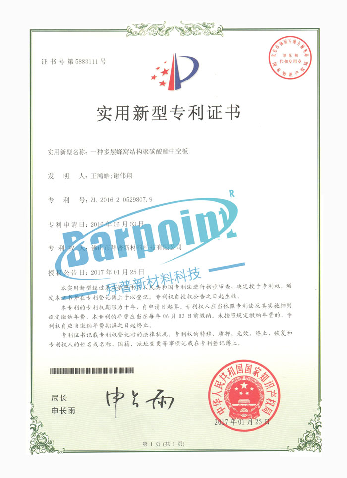 多層蜂窩結(jié)構(gòu)中空板(實用)